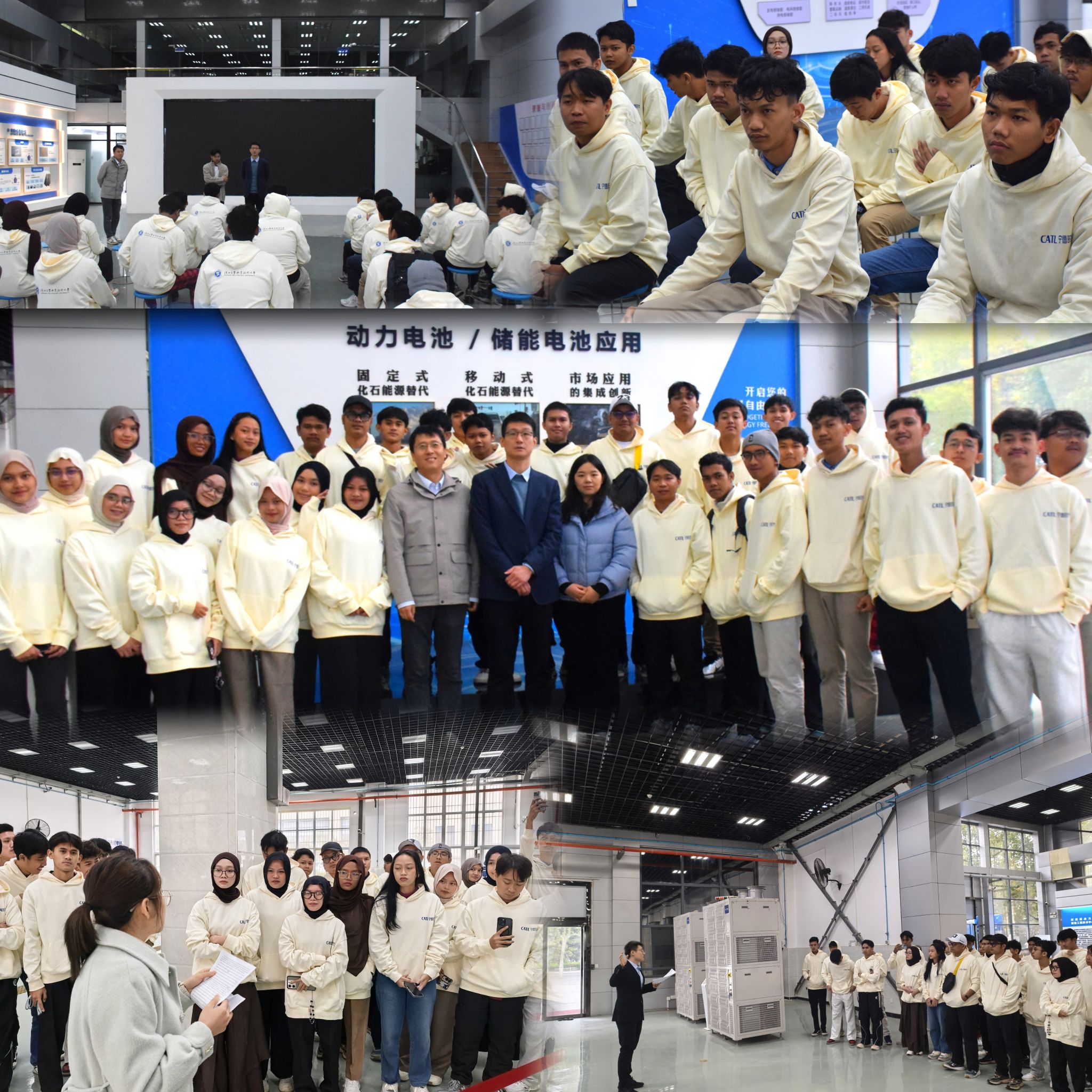 为深化产教融合,助力国际学生感知新能源产业前沿,10 月 23 日上午,我院组织 2025 级宁德时代印尼留学生工匠班赴宁德时代工程训练中心开展参观学习。副院长许冀阳、各办公室主任及国际交流学院办公室主任辛旗等参与活动。
