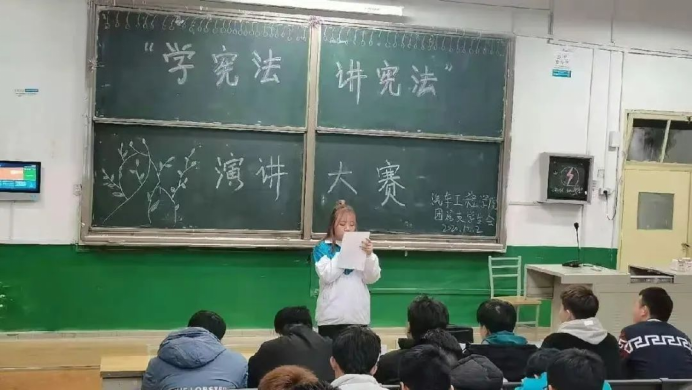 比赛过程中,各选手紧扣主题,围绕“宪法与社会”“宪法与国家”“宪法与个人”等主题,分享宪法案例、法治故事,多角度阐述自己对宪法的认识和理解,感悟宪法对个人、国家和社会发展的影响。经过激烈角逐,汽检2001白江江荣获一等奖、新能源1901校杭伟、田丝雨荣获二等奖、新能源1903李浩、新能源杨翀、师刚分别荣获三等奖。