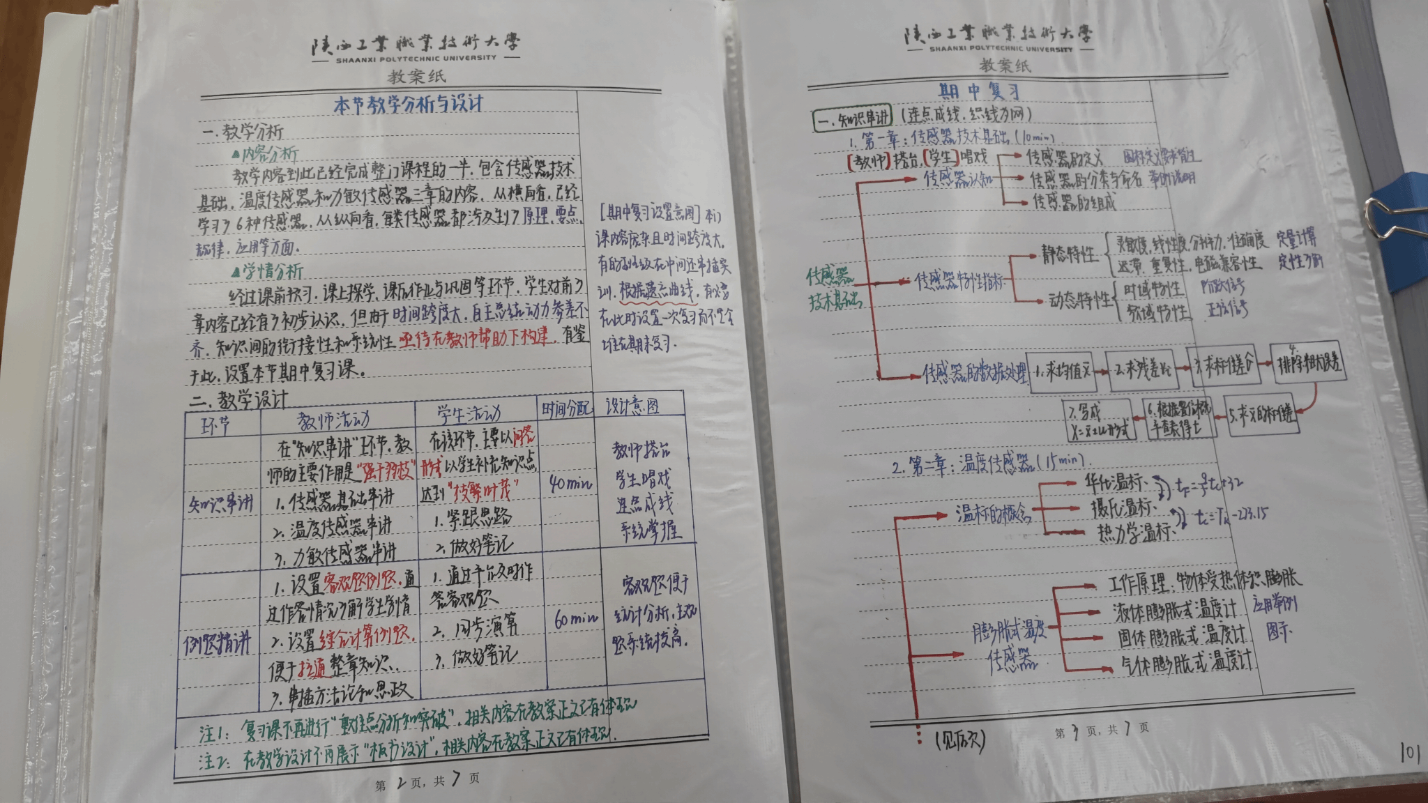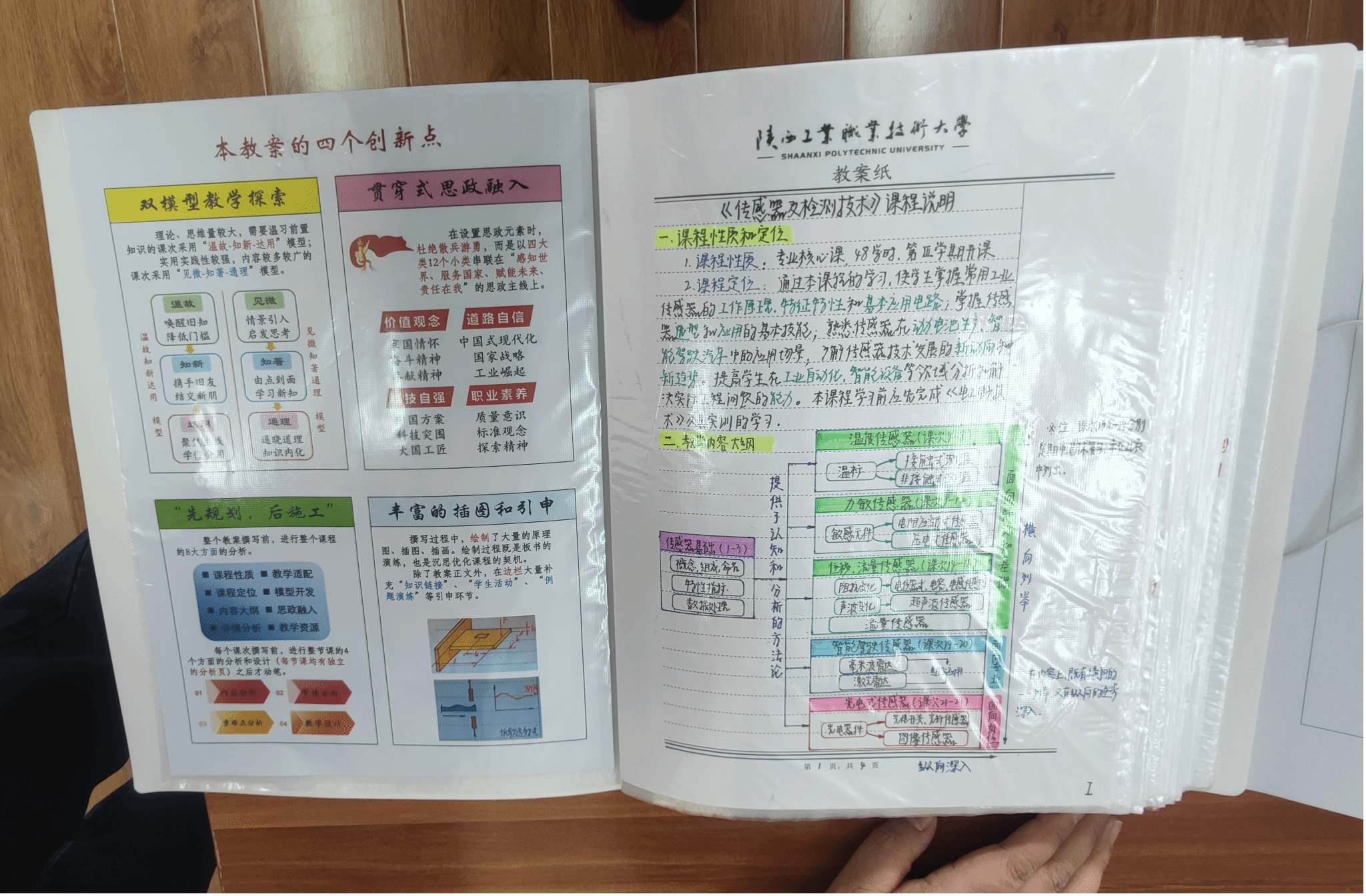 展示现场,教案设计紧扣职业教育类型特色,聚焦课堂创新,注重实践性与创新性结合。优秀教案图文并茂,全面呈现了教师在课程目标设定、教学内容重构、教学方法创新、课程思政融入、师生互动设计等方面的匠心巧思。其中《传感器及检测技术》教案突出“双模型教学探索、‘规划施工’设计、贯穿式思政融入、插图和引申嵌入”四维创新,丰富整体教学设计;同时巧妙融入思政元素,将价值观念、职业素养、道路自信、科技自强等融入专业教学,实现知识传授与价值引领有机统一。《电力驱动系统专项实训》教案将行业新技术、新标准融入教学环节,设计项目化、模块化教学任务,实现技能培养与职业素养深度融合。参展中,观摩教师围绕优秀教案的整体设计与创新点展开了深入交流。