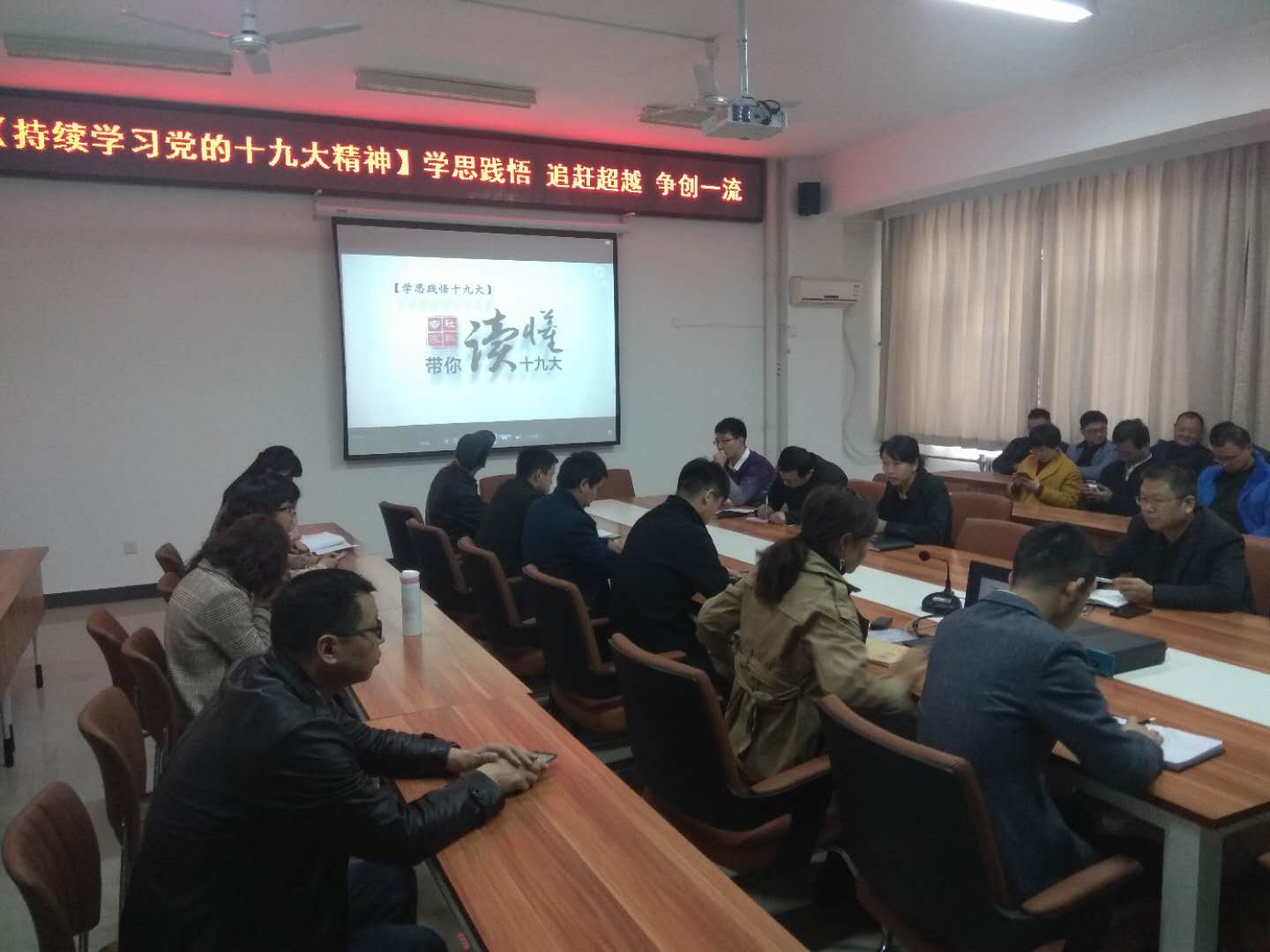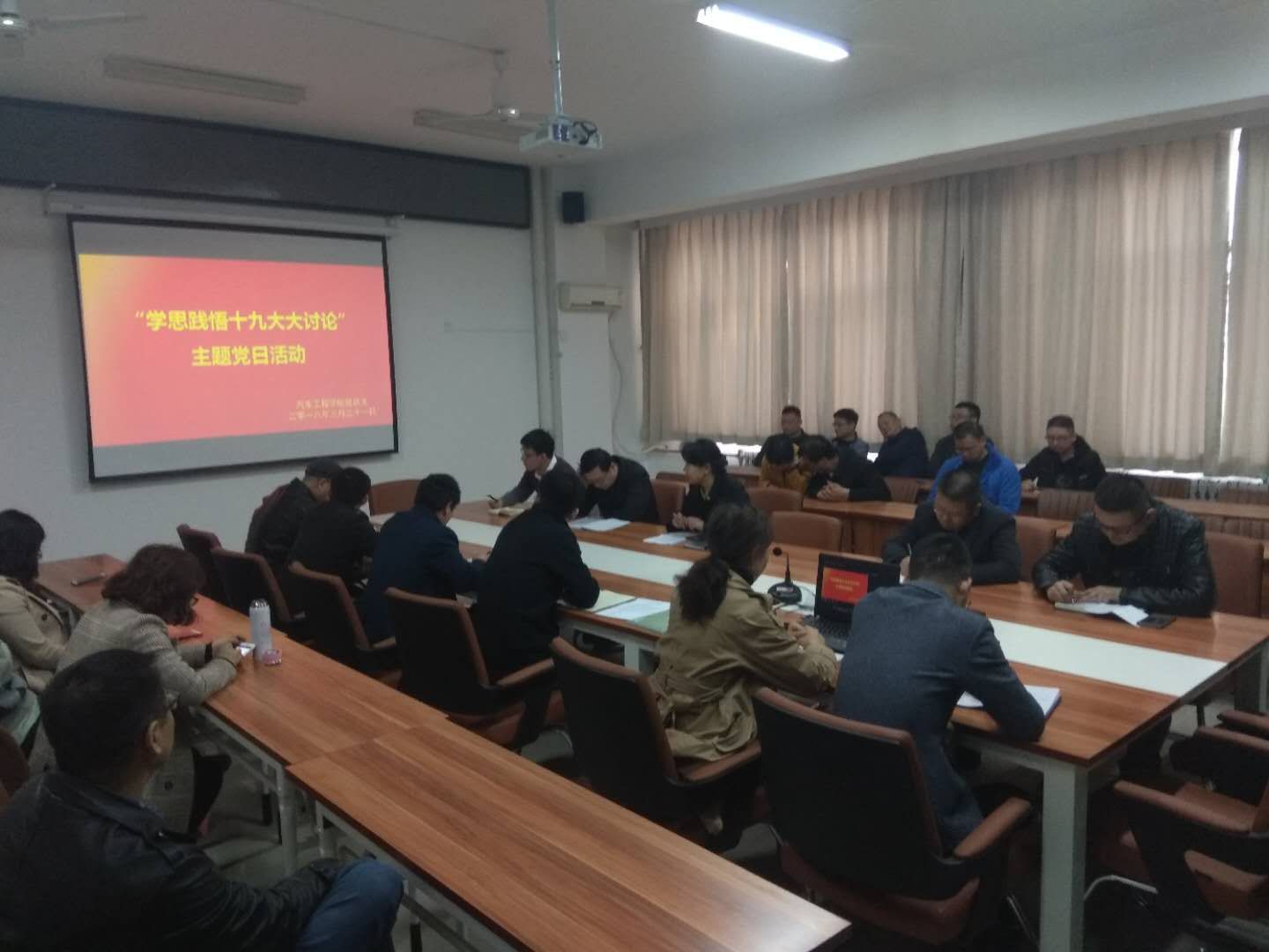 为进一步学习贯彻党的十九大精神,强化教职工追赶超越创一流意识,3月21日下午,汽车学院党总支全体党员在崇文楼A505开展以“学思践悟十九大精神”为主题的学习教育党日活动。会议由党总支书记高亚宁主持。
