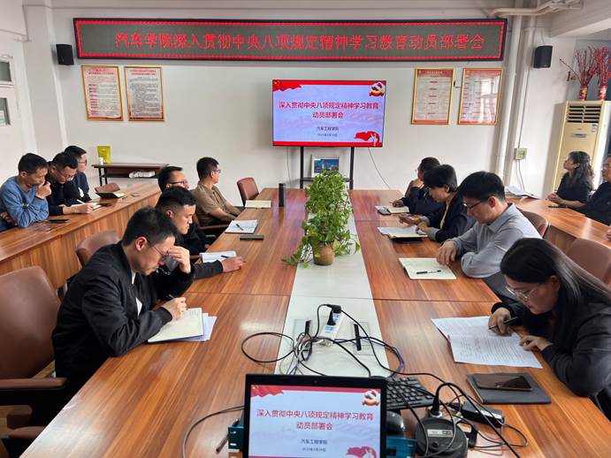 为深入贯彻落实中央八项规定精神,持续深化作风建设,推动全面从严治党向纵深发展,3月26日,汽车学院组织召开学习贯彻中央八项规定精神专题动员部署会。学院党总支书记高亚宁主持会议并作动员讲话,全体党员参加会议。