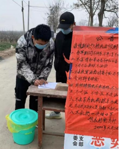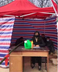 冯情情和村里的“硬核”大爷们一起工作,变成村里的“拦路虎”,认真排查每一位进出人员,严格管控外来人员的流动,车辆登记,测量体温,跟着村里的工作人员挨家挨户发放防疫宣传单。