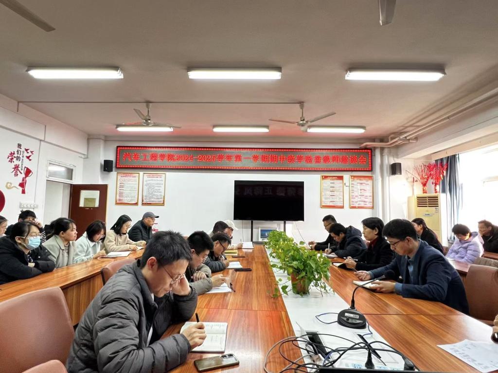 为进一步提高教育教学质量,按照学校期中教学检查工作安排,11月25日下午,汽车工程学院于崇文主楼六楼会议室召开2024-2025学年第1学期期中教学检查工作会暨教师代表座谈会。会议由副院长许冀阳主持,汽车工程学院全体教职工参加。