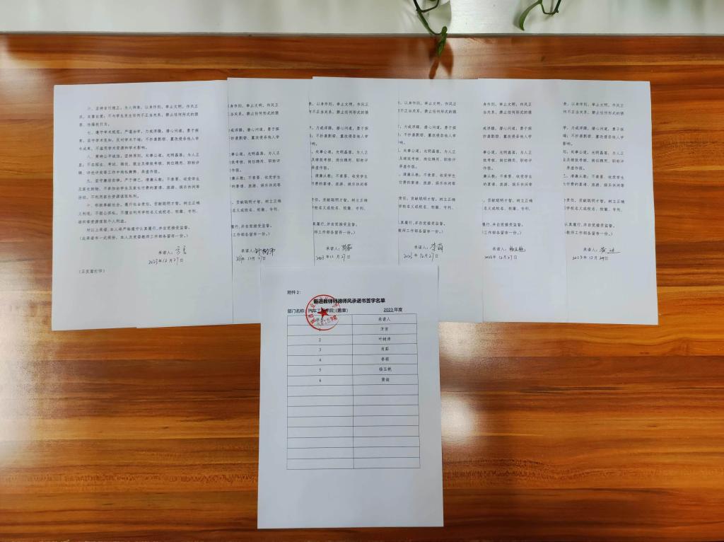 活动中汽车工程学院6位2023年新进教师认真研读了《陕西工业职业技术学院教师师德师风承诺书》,并郑重签字。本次活动是汽车学院师德师风常态化建设的一项重要环节。汽车学院将继续通过形式多样、丰富多彩的活动方式,激发活力,引领全体教职工落实立德树人根本任务,把师德师风建设摆在教师队伍建设的首要位置,牢记为党育人、为国育才使命,推动教师队伍建设改革发展不断取得新突破。