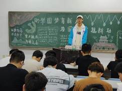 各个班级围绕班会主题有序地开展班会活动,形式各异,内容丰富多彩。通过资助政策内容的知识问答,加强学生对资助政策的了解,使学生可以更好地熟悉资助途径与内容;通过宣誓诚信助学承诺书,表达诚信获取国家资助奖学金的心志,提高资助育人的真实性;通过主题解说大学生助学方式,让学生明白大学助学的具体方式,形成良好的助学环境。