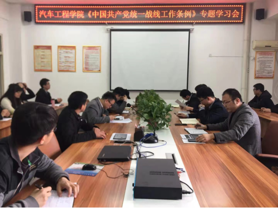 4月12日下午,汽车学院在崇文楼A505会议室召开全体教职工会议,传达学习中共中央最新修订的《中国共产党统一战线工作条例》,进一步学习贯彻习近平总书记关于加强和改进统一战线工作的重要思想,不断提高统一战线工作科学化、规范化、制度化水平。