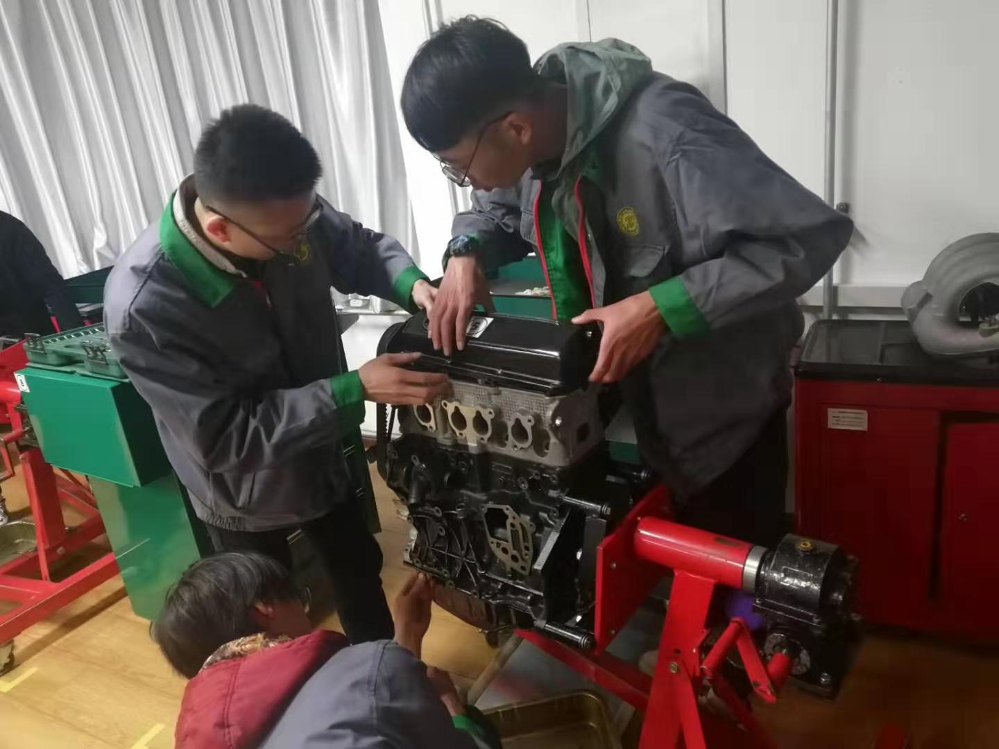 决赛于2019年11月28日下午16:00于精艺楼3楼发动机拆装实训室进行。经过前两轮的激烈角逐,最终有8组共计24名同学顺利进入决赛。决赛借助发动机拆装,考察学生的动手能力、汽车拆装基础能力及团队协作能力。决赛根据复赛的组队,由3人共同完成。8组队伍同时进行,以用时、操作规范性、出错率等指标综合决出名次。