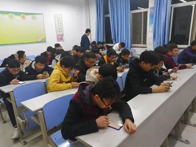 初赛于2019年11月20日晚上19:00在学生晚自习教室举行,2018级汽车检测与维修技术专业所有学生全员参与,主要考察汽车检测与维修技能相关理论知识。100道选择题,限时1小时内作答完成。初赛运用信息化手段,采用雨课堂模式,在后台发布试卷,学生在手机上作答,当场提交就自动生成笔试成绩。无纸化笔试,节省纸张,省去了试卷批阅时间。