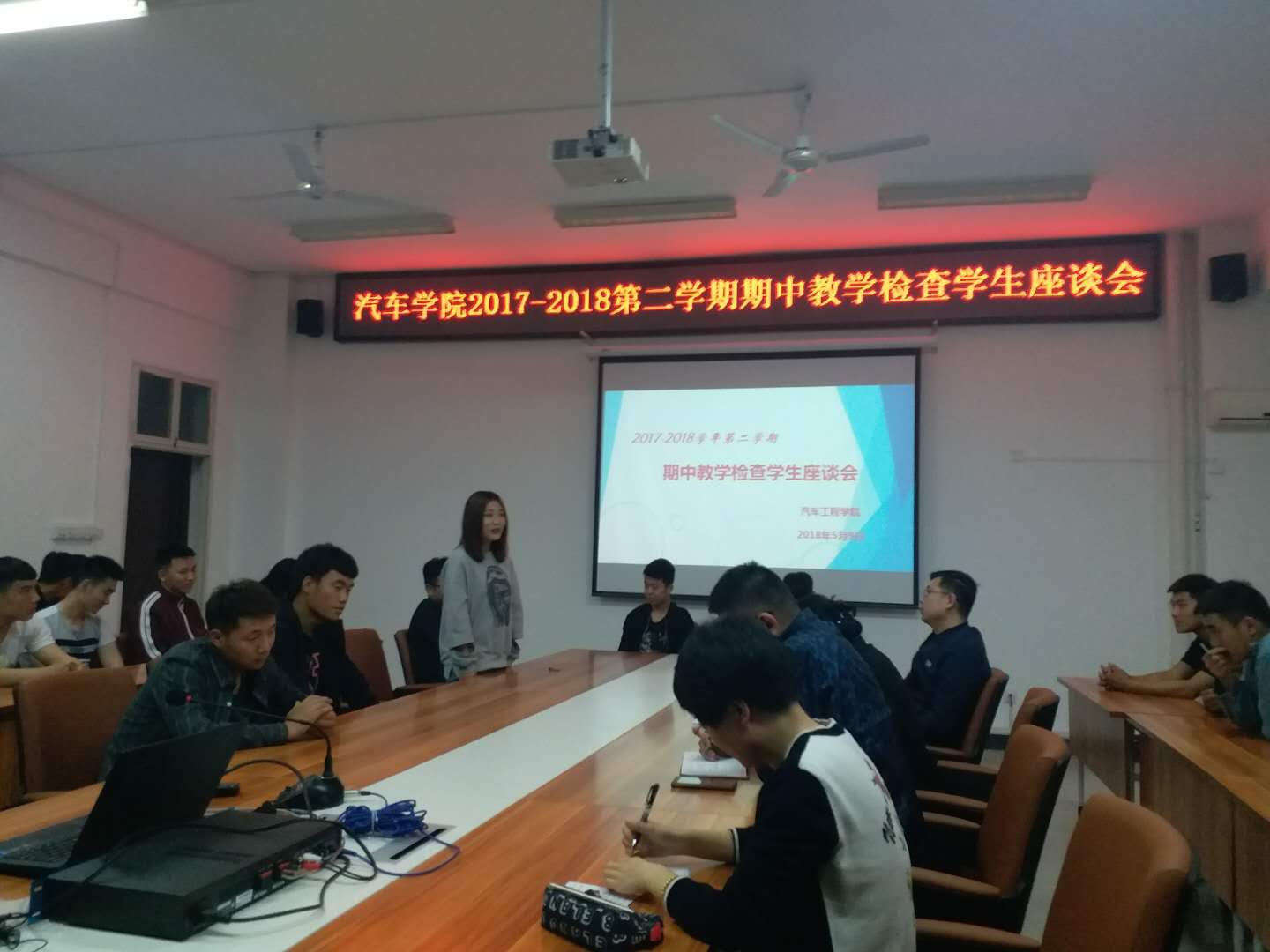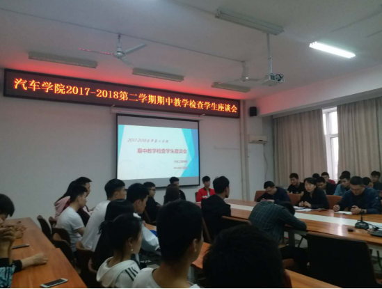 为落实学校期中教学检查要求,深化“以学生为中心”的教育理念,进一步提高我院学生教育管理工作水平,5月9日下午,汽车工程学院在崇文南楼五楼会议室开展了期中教学检查学生座谈会,学院党总支书记高亚宁、学工办主任刘冽、教学办主任何奇彦、各年级辅导员及30名学生代表参加了会议。会议由学工办主任刘冽主持。