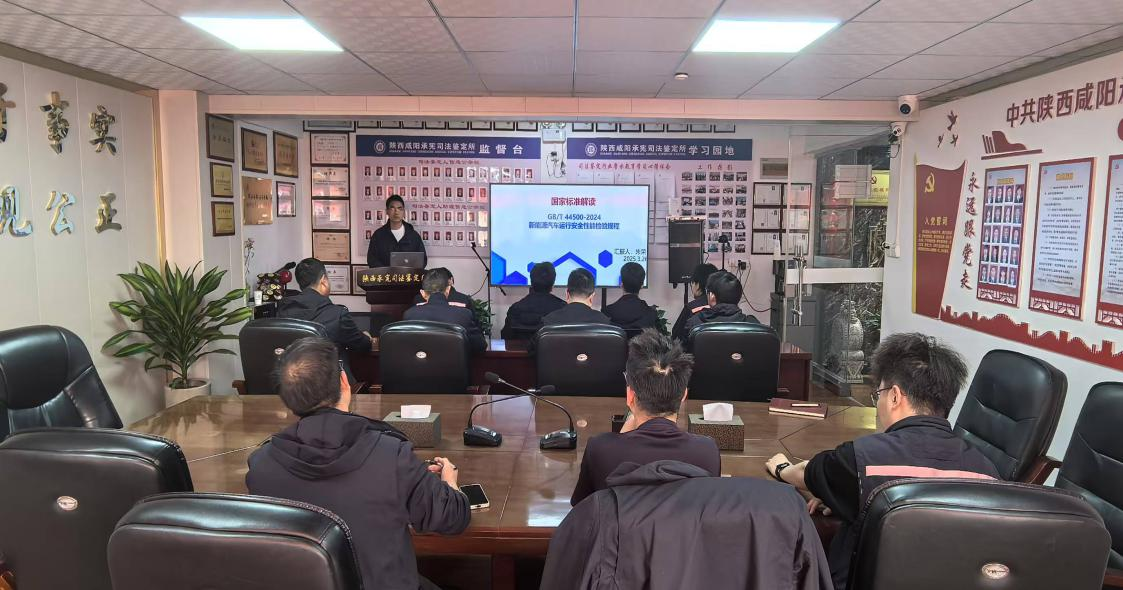 为深入贯彻落实国家新能源汽车安全检验新标准,提升司法鉴定行业对新能源汽车运行安全性能的检验能力,2025年3月26日,我院汽车检测与维修技术教研室专任教师朱荣老师应陕西咸阳承宪司法鉴定所邀请,开展题为《GB/T44500-2024〈新能源汽车运行安全性能检验规程〉解读》的专题培训讲座。本次培训旨在帮助司法鉴定从业人员精准掌握新规要点,推动行业检验技术规范化、标准化发展。