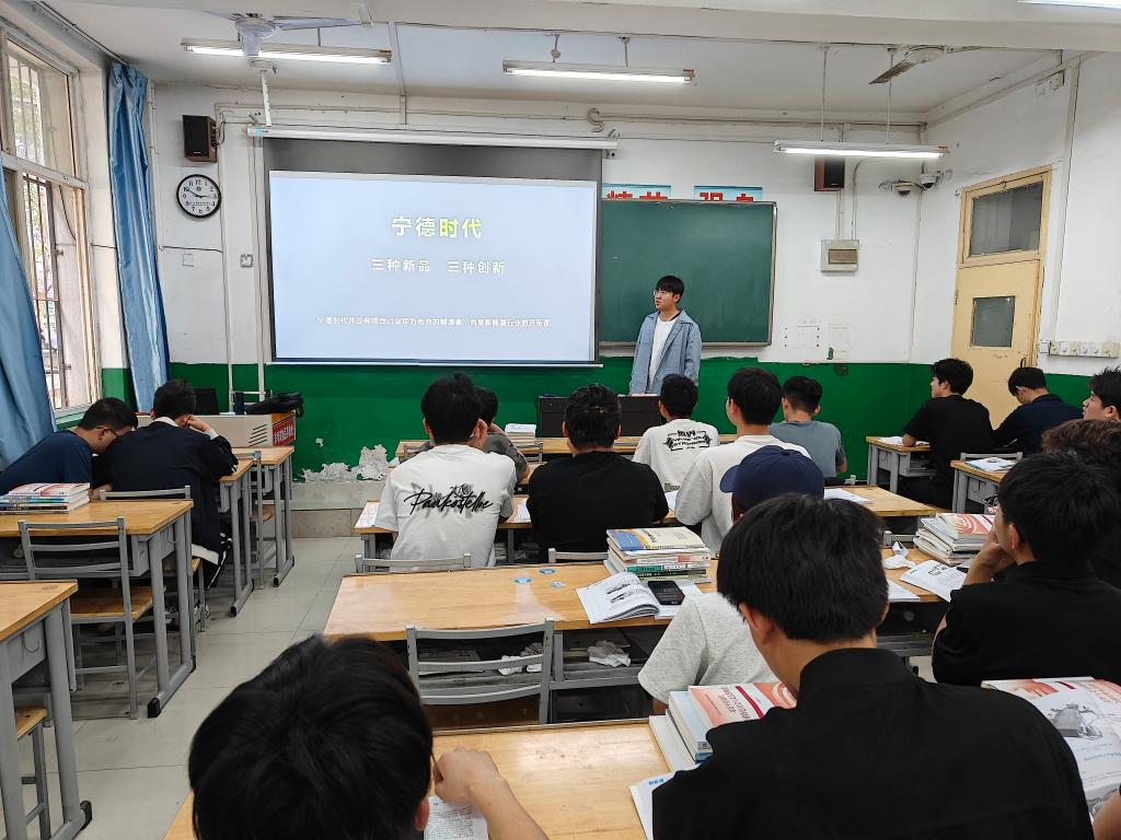2025年4月29日,在《新能源汽车概论》课堂上,一场别开生面的"动力电池技术盛宴"正在上演。汽车学院贾长建老师带领汽制(动力电池方向)5211班30余名学生围绕宁德时代最新发布的三款颠覆性产品——钠新电池、骁遥双核电池、第二代神行超充电池展开热烈讨论,通过分组汇报、技术参数解析,深度感知全球动力电池技术变革趋势。这场融合产业前沿与课堂教学的实践活动,正是该校依托宁德时代校企合作订单班,构建"产教融合、协同育人"模式的生动缩影。